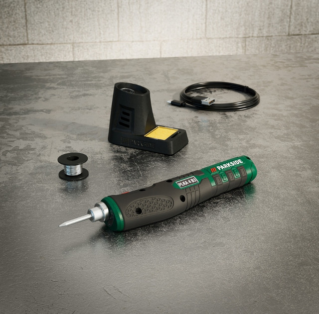 Акумуляторний паяльник на підставці Parkside 4 В з USB-C кабелем для заряджання + припій (PLKA 4 B3)