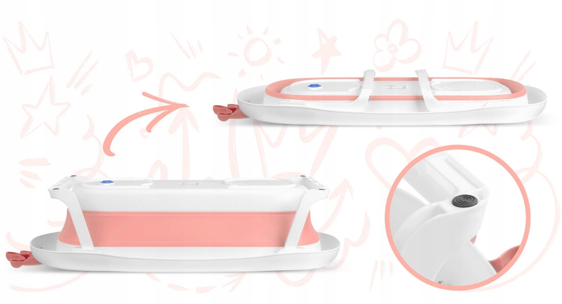 Складна дитяча ванна з подушкою RICOKIDS Біло-рожева (RK-280)