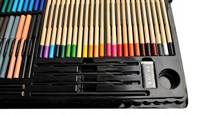- 288 ЕЛЕМЕНТІВ - |використовуючи величезний вибір з 72 крейди, 96 маркерів, 60 масляних пастель, 18 акварельних фарб, 3 олівців, 3 кистей з ємністю для води, 30 скріпок, 2 точилок і 2 ластиків, ми легко роботи.