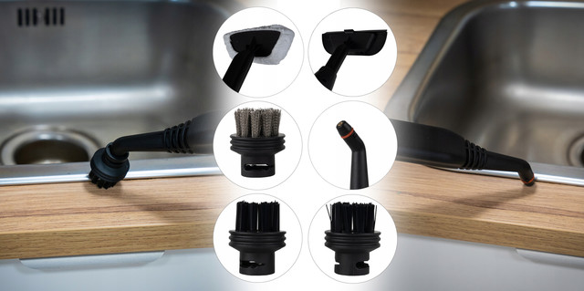 Насадка для прасування — для використання з маленькою мікрофіброю — підходить для прасування, освіження та чищення тканин, наприклад, тюлю, штор, оббивки, одягу, дивана; також можна використовувати з насадкою зі скребком для води — рекомендується для миття скляних поверхонь, таких як дзеркала, вікна або душові кабіни.